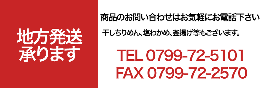 潮流の激しい淡路島の海で育ったわかめの「葉」の部分のみを使用。ミネラル、食物繊維等、体に良い「海の野菜」と言われる食材で食卓には欠かせない一品。